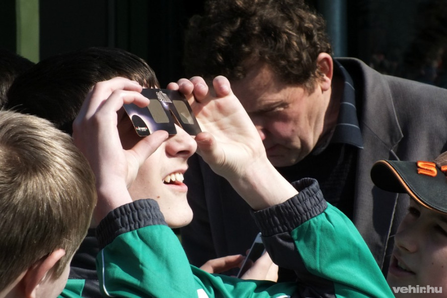 Zircen egyébként nemcsak a múzeumnál néztek az ég felé, a III. Béla Gimnázium előtt is camera obscurákkal és védőszemüvegekkel "felfegyverkezve" tartottak rendkívüli környezetismeret órát.
