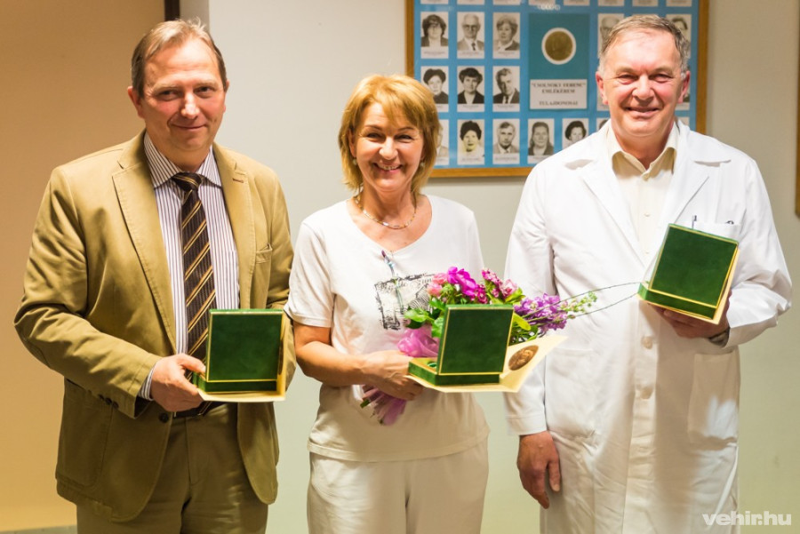 Elődeink kitartó munkája alapozta meg lehetőségeinket, a mi feladatunk, hogy helyt álljunk és méltó utódként viselkedni. Ehhez a jó szakmai ismeretek mellett sok erőre, bizalomba vetett hitre és kitartásra van szükség – hangzott el az emlékülésen, melyen Csolnoky Ferenc emlékérmet vehetett át Tamás Gizella, a Fül-orr-gégészeti osztály vezető műtőse, dr. Moldoványi István nyugalmazott ortopéd szakorvos, a Traumatológiai, Ortopédiai és Szájsebészeti Mátrix osztály korábbi főorvosa, valamint dr. Gécs Sándor, az Urológiai osztály osztályvezető főorvosa.