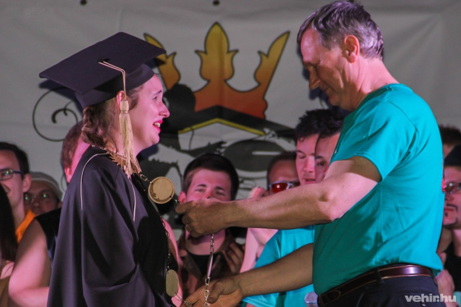 A ceremónia végén végül az örülhetett az egyetem egyik legnagyobb elismerésének, akinek a neoncsöve világított a gyengeáramú gömbhöz érintve, így derült tehát fény(!) arra, hogy a VEN életében először egy fiatal hölgy érdemelte ki, hogy diákrektor legyen.