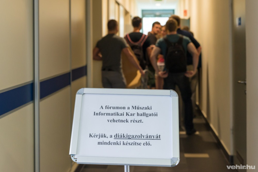 Azért érkeztünk az I épületbe délután egy órára meghirdetett hallgatói fórumra, hogy ott végre hiteles információkat hallhassunk, és azt olvasóinkkal is megoszthassuk. Lelkesedésünket hamar letörték, kiderült, hogy csak a Műszaki Informatikai Kar hallgatói vehetnek részt a tájékoztatón, diákigazolvány felmutatásával engedték be őket a terembe.