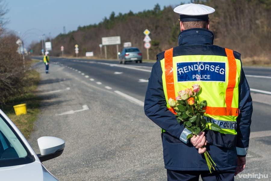 Mintha csak az lenne, pedig egy átlagos nőnap. Rendőrők várják az érkező hölgyeket virágcsokorral. Itt is volt mosoly bőven...