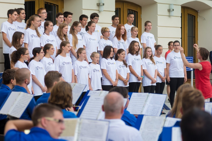 A tanévnyitón természetesen a zene kapta a főszerepet, az iskola diákjai nyárbúcsúztató dallamokkal tették élettelivé a Megyeháza teret.