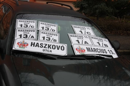 A lokálpatrióták a tábla és a felszerelés költségét is fedezik tagdíjukból – mondta Molnár Ernő, a lokálpatrióták elnöke. Hozzátette, hogy az irányító-informáló utcanévtáblák kihelyezése városi feladat, a házakon elhelyezendő tábláké pedig a lakóké, lakóközösségeké. Remélem – magyarázta Molnár Ernő –, hogy tevékenységünk során előbb-utóbb ezek a táblák is egységessé válnak.