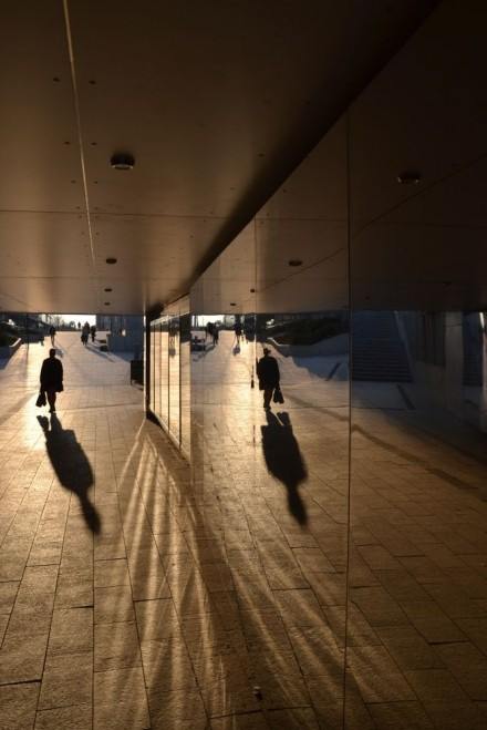 A forgalmi viszonyok tisztázása érdekében a gyalogos közlekedés egyértelműen az aluljáróba terelődött. Most lejtőssé alakított utcán érhetjük el az aluljárót, és ugyanilyen módon tudunk feljönni belőle. A süllyesztett utcarészt széles lépcsők és növényekkel beültetett felfelé nyíló rézsűk határolják, amelyek oldják a zárt oldalfalakat, barátságos és egyben határozott rávezetést biztosítanak az aluljáróra mindkét irányból. Az aluljáró belső tükröződő burkolata növeli az átláthatóságot és optikailag a teret is, ráadásul a szomszédos nyers beton támfalakra is kihajlik. Ezek a támfalak helyet adnak a vendéglátó egységek teraszainak illetve a pavilonoknak is. Az építészek egységes megjelenésű, ugyanakkor változatos formájú pavilon- és teraszrendszert terveztek, amelyek közül eddig egy információs pavilon valósult meg. A látszóbeton támfalakon lévő acél korlátok a vasbeton szerkezetek síkja elé kerültek, növény futtató rácsokkal integrálva a kúszó növényekkel együtt egy másodlagos, plasztikus zöld térfal-rendszert képeznek.