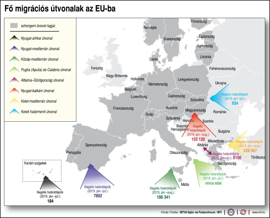 A főtanácsadó hétfőn, Budapesten tartott sajtótájékoztatóján az idei év migrációs tapasztalatait összegezve közölte, 2015-ben másfél millió illegális migráns érkezett Európába, közülük 400 ezren Magyarországon keresztül haladtak át.