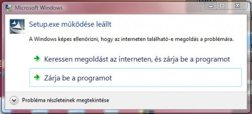 Első nekifutásban egy Windows Vista operációs rendszerrel ellátott gépre telepítettük szerettük volna telepíteni a szoftvert.