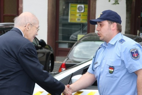 Az utolsó Habsburg trónörökös veszprémi látogatása a városházán fejeződött be. Népes érdeklődőtábor előtt Habsburg Ottót a a Páneurópa mozgalom veszprémi egyesületének ex-elnöke, Gy. Lovassy Klára köszöntötte.