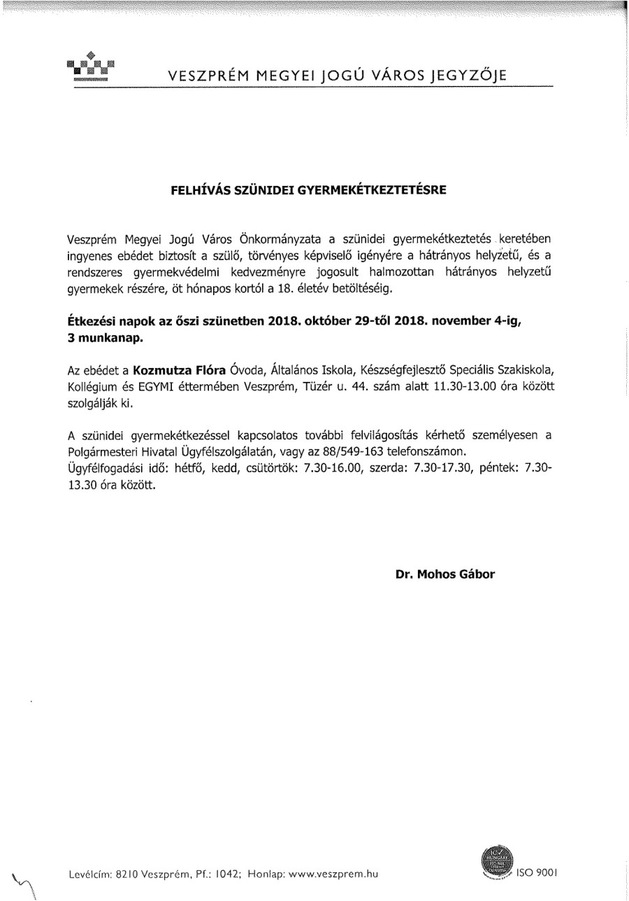 Gyermekétkeztetés az őszi szünetben