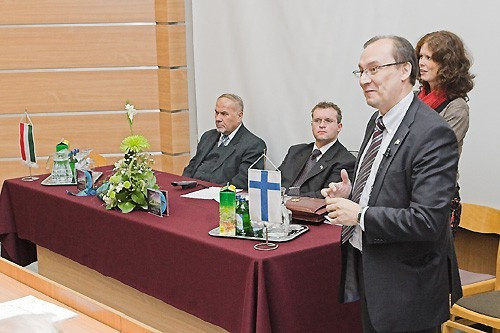 Ezt követően a Pannon Egyetem Polinszky termében tartott előadást a finn közoktatás sikerességének okairól. Elmondta, hazájának évekkel ezelőtt ugyanolyan gazdasági nehézségekkel kellett szembe néznie, mint ma Magyarországnak. Hasonló, ha nem súlyosabb elvonások zajlottak minden területen, az oktatást és kutatás-fejlesztést leszámítva. Ez egy politikai konszenzuson alapuló, hosszú távú döntés volt.