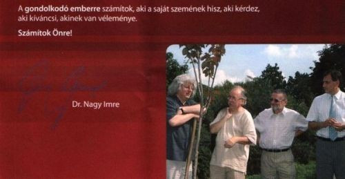 Farkasházy Tivadar mellett Esterházy Péter és Csányi Vilmos is látható egy MSZP-s kampánykiadványon. Egy, az egri Érsekkertben történt faültetés után készült képen láthatók együtt Nagy Imrével, a város korábbi szocialista polgármesterével, a párt egri vezetőjével. Nagy Imre a szórólapon úgy fogalmaz: „A gondolkodó emberre számítok, aki a saját szemének hisz, aki kérdez, aki kíváncsi, akinek van véleménye. Számítok Önre!"