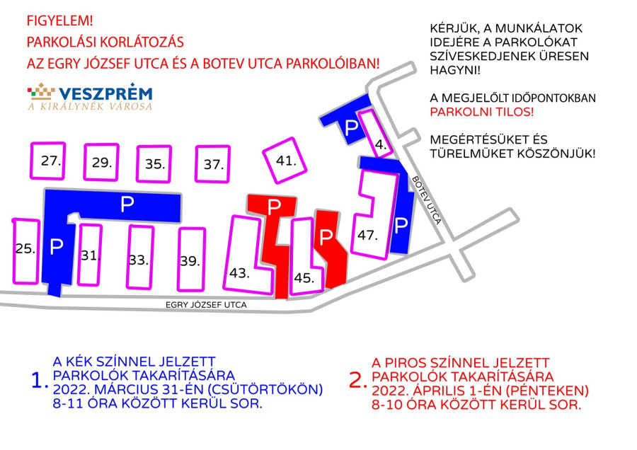 Ideiglenes parkoló- lezárások takarítási munkák miatt