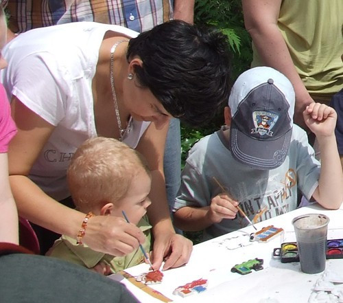 A mosolygó kicsik a szülők segítségével gyurmáztak, hajtogattak és rajzoltak. Ennek a csodavilágnak a részeseivé is válhattak, mivel az arc- és testfestés segítségével bárkiből lehetett szuperhős, állatka, királylány vagy tündérke.