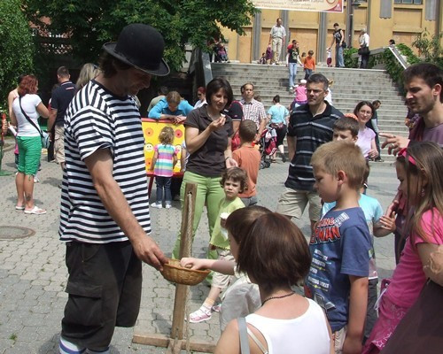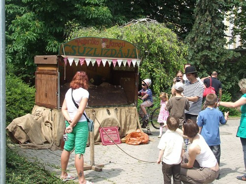 A legnagyobb érdeklődést talán a lufis stand és a vattacukor iránt mutatták, míg fel nem tűnt a nagy sárga medve, aki cukrot osztott mindeniken. Az épület előtti téren a Kőris Zenekar húzta a talp alá valót, táncházzal és zenés játékokkal kedveskedtek a gyerekeknek.