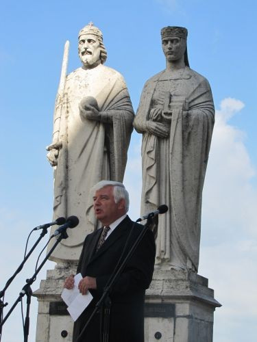 - „Szent István nézz Mennyből le, a szép magyar népedre” – ezzel a dicséretéből vett idézettel kezdte gondolatait Surján László, aki szerint e két sor önvizsgálatra készteti a magyar embereket – elgondolkodunk rajta, vajon mit lát első királyunk, ha most letekint ránk. Lát-e tisztességet, munkát, becsületet? Nem több-e a törtető, a honból és nem a honnak élő, a gyáva, a tolvaj? Nehéz kérdések ezek, de úgy vélem, van annyi jó, és erő ebben a nemzetben, hogy képes legyen ismét megújulni. Mi kell ahhoz, hogy ezzel az új eséllyel élni tudjunk?