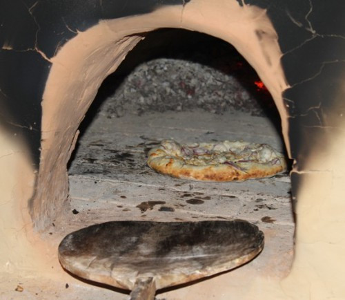 A Bakonyi Ház környékén megcsapta az orromat egy különlegesen finom illat. Bekukkantva az ajtaján, idő asszonyok sürögtek és kínálták a kíváncsiskodóknak a frissen sült langallót. Rózsi néni magyar pizzája kerek, ropog, lefolyik róla a szalonna zsírja, a lilahagyma pedig csak még tökéletesebbé teszi ezt az ízharmóniát. Nem ám bolti készítésű kemencés lángosról van szó, ebbe egy család hagyománya lett belesütve, mivel a receptet még a nagymama tanította.