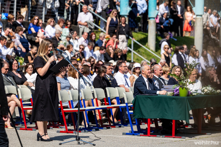 A tizenegyedikes évfolyam nevében Hudi Lara (11.G) búcsúztatta a távozó osztályokat. Emlékeztetett: a mostani végzősök különleges, kihívásokkal teli időszakban léptek be először az intézménybe: a covid idején, lezárások közepette kellett kialakítaniuk az első ismertségeket – online. Ezekből aztán később mégis barátságok szövődtek, nehézségeket és sikereket éltek meg együtt – most pedig, ennek az útnak a végén készen állnak arra, hogy a megszerzett tudással felvértezve bátran lépjenek tovább a jövőbe. Azt kívánta diáktársainak, legyen erejük megvalósítani az álmaikat, elérni a céljaikat, legyenek bátrak, amikor dönteni kell, és kitartóak a nehézségekben.