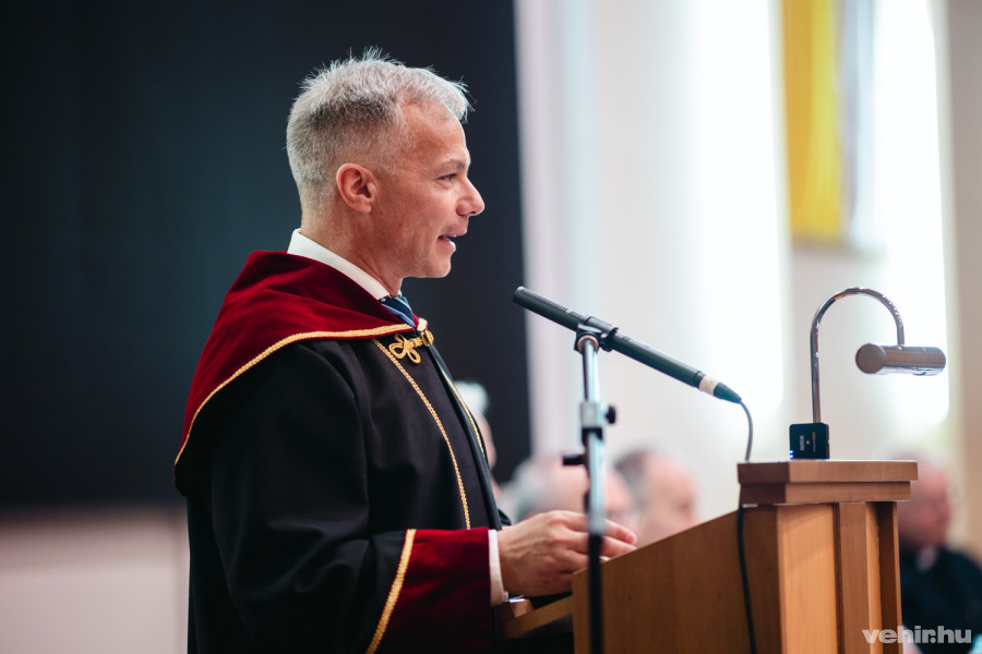 Dr. Sebestyén József, a Veszprémi Érseki Főiskola rektora beszámolt az intézmény kiemelkedő tanévi eredményeiről. „A 2024/25-ös tanévre 332 hallgató iratkozott be, közülük több mint kétszázan új beiratkozóként kezdték meg tanulmányaikat. Ez önmagában is örvendetes, de ennél is fontosabb, hogy a főiskola új szintre lép társadalmi szerepvállalásában.” Hangsúlyozta: az újonnan induló ápoló képzés történelmi lépés a város felsőoktatásában, és külön köszönetet mondott dr. Czinkotay Frigyesnek és Valler Ilonának.