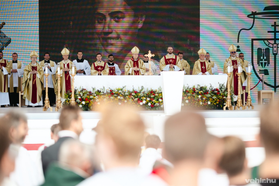 Harangszóval indult a szentmise. A székesegyházban Bódi Mária Magdolnának szentelt harang megszólalt, aminek hangját és webkamerán keresztül a képét az aréna előtt is lehetett hallani és látni.