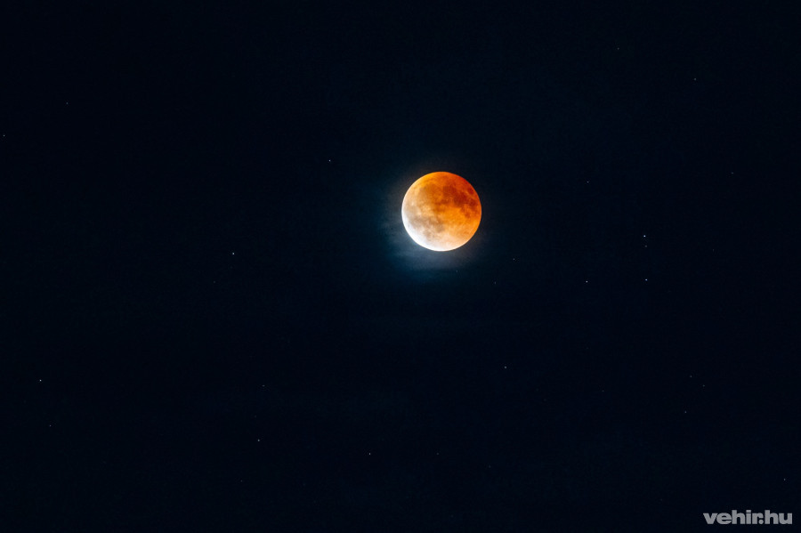 Ugyan az égboltra több fátyolfelhő is bekúszott, azokon átderengve is látszódott, ahogy égi kísérőnk nem a megszokott fehéres árnyalatában emelkedik az égbolton.