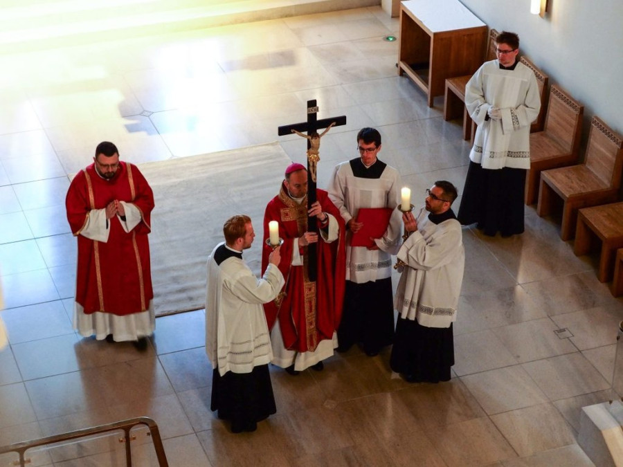 A liturgia elején elhangzó szentírási szakaszok már előre megnyitották a szíveket a megváltás misztériumára. Izajás próféta szenvedő szolgájának képe – a „fájdalmak férfija”, aki „a mi bűneinkért szúrták át” – megrendítő erővel mutatott rá arra, hogy Krisztus szenvedése nem távoli történet, hanem mindannyiunk életének része. A zsidókhoz írt levél pedig arra emlékeztetett: Jézus nem idegen tőlünk, hanem együtt érző főpap, aki ismeri gyengeségeinket, és utat nyit számunkra az Atyához.