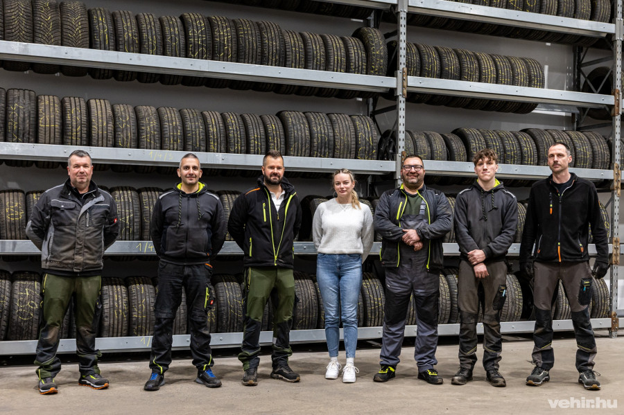 A gumiszervizelés terén a cég a hazai útviszonyok jelentette kihívásokra is villámgyors megoldásokat kínál. A kátyúk okozta sérülések vagy az extrém esetek, például egy százasszög okozta defektek javítása rutinfeladatnak számít, amit a csapat azonnal orvosol, minimalizálva az autósok kényszerű várakozását, folytatta Zsolt. Az ügyfelek kényelmét szolgálja még a szerelőcsarnok mögött található, 250 négyzetméteres raktár is. Ez a hatalmas tér egyfajta gumihotelként funkcionál, ahol biztonságos körülmények között tárolják a szezonális téli és nyári abroncsokat azok számára, akik otthon nem rendelkeznek garázzsal vagy elegendő hellyel – mutatta meg a plafonig sorakozó autógumikat Zsolt a hátsó részen.