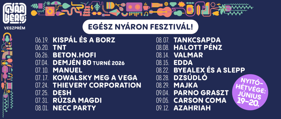 Kiderült, hogy Desh, a Tankcsapda, a Valmar, az EDDA, ByeAlex és a Slepp, Dzsúdló, Majka, a Carson Coma és Azahriah is látható lesz Veszprémben, valamint egy Necc Partyt is rendeznek.