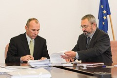 Tegnap délután Debreczenyi János leköszönő polgármester átadta a város működéséhez kapcsolódó hivatalos dokumentumokat Porga Gyulának, Veszprém új vezetőjének. A szűk körű protokolláris ceremónián Büki Szilvia címzetes főjegyző asszony mellett Cser Tamás, a Közigazgatási Hivatal Törvényességi Osztályának vezetője és a helyi média színe-virága volt jelen.