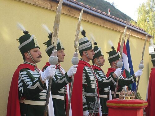 – Azokra emlékezünk, akik átmentették a Szent Koronát a legnehezebb időkben. A koronaőrség tagjai hivatásos katonák voltak. Feladatuk azt volt, hogy a Szent Korona és a nemzet őrei legyenek. Nincs az a biztonsági rendszer, amely felérne a szakmájához értő magyar katonával. Veszprém fontos állomása a hőstettnek, így a város kötelességének érezte, hogy emléket állítson a korona őreinek – számolt be róla Dr. Hende Csaba honvédelmi miniszter.