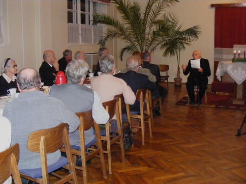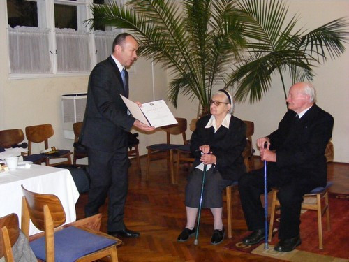 A lelkész számos háborús történettel foglalta le a jelen lévők figyelmét, elmesélte életének legfontosabb állomásait, többek között azt is, miként ismerkedett meg feleségével. Elmondta, Mariettával 1950-ben keltek egybe, így idén ünneplik 60. évfordulójukat, felesége ebben az évben ünnepli 85. életévét, ő maga pedig december 16-án lesz 100. éves, így bőven akad ok ünneplésre 2010-ben.