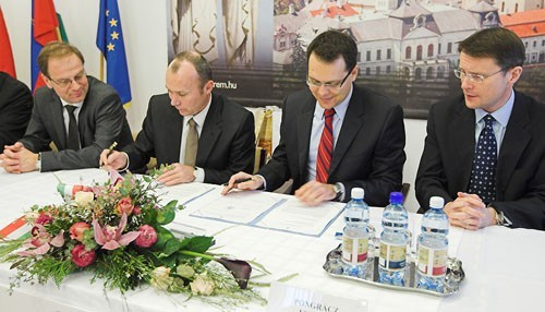 Porga Gyula polgármester, Pongrácz Ferenc, az IBM megbízott ügyvezető igazgatója és David Stokes, IBM Kelet-Közép Európai igazgatója december 16-án írták alá a megállapodási szerződést a Városházán.