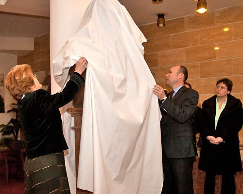 A szobor leleplezése alatt a születésről, az életről és az elmúlásról szóló erdélyi népdalt énekelt Veresné Petrőcz Mária.