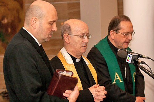 Ezt követően dr. Márfi Gyula veszprémi érsek, Steinbach József református püspök és Ittzés János evangélikus püspök áldották meg a szobrot.