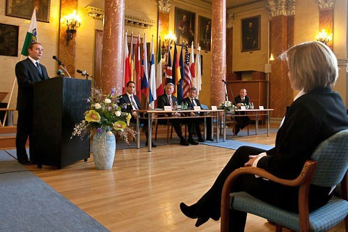 A köztársasági elnököt köszöntötte a megyei önkormányzat frakciói részéről dr. Áldozó Tamás, a Fidesz és Dobó Zoltán, a Jobbik frakcióvezetője. Az összevont közgyűlés zárásaként a Magyar Köztársaság elnöke elismeréseket adott át.