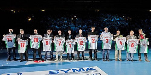 A szünetben az 1986-os világbajnokságon ezüstérmet szerző együttes tagjait tették tiszteletüket az arénában. A negyedszázados jubileum tiszteletére Sinka László MKSZ-elnök és Vass Sándor alelnök köszöntette Mocsai Lajos akkori nemzeti együttesét.