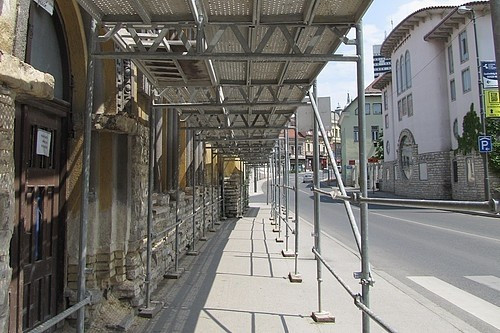 A régi zeneiskola épülete magántulajdonban van, a tulajdonos engedélykérelmet nyújtott be az épület bizonyos részeinek felújítására, megerősítésére, átalakítására. Az épület homlokzata balesetveszélyes állapotban van, a homlokzati vakolat a zárópárkány magasságában foltokban levált és veszélyezteti a közterület rendeltetésszerű használatát, ezért vált szükségessé az állványzat felhúzása, megóvva a ház melletti környezetet – mondta el érdeklődésünkre az irodavezető.