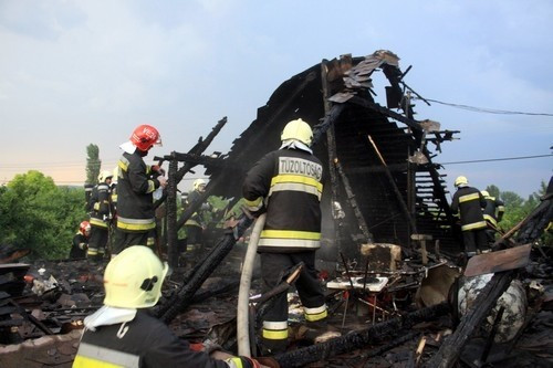 Öskü, 2011. június 6. Tűzoltók dolgoznak a Veszprém megyei Öskün, ahol villám csapott egy családi házba június 5-én este. Az épület tetőzete kigyulladt, személyi sérülés nem történt. MTI Fotó: Nagy Lajos