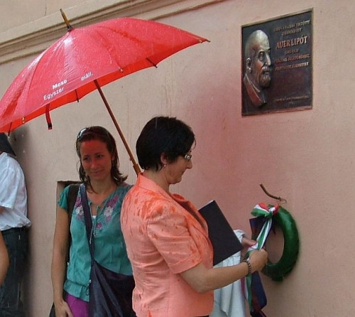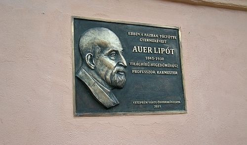 – Auer Lipót Veszprémtől Szentpéterváron át New Yorkig ívelő páratlan életútja és pedagógiai nagysága nyilvánvaló tény. Nagy az adósságunk, hogy ezt Magyarországon és külföldön, de mindenekelőtt itt, Veszprémben közismertté tegyük. Auer Lipót veszprémi emlékezetének és tiszteletének kialakításában vannak már eredményeink. Mi, veszprémiek, büszkék vagyunk zenei helytörténeti értékeinkre. Támogatnunk kell, hogy Auer Lipót magyarországi kultuszának városunk legyen a középpontja – ennek a szándéknak szellemében született meg a művész gyerekkori lakóhelyét megjelölő emléktáblának gondolata is. Jelképes ajándék Auer születésnapján az emléktábla – Dienes Attila szobrászművész alkotása –, az ünnepelt iránti tiszteletünk kifejezése. De ezzel együtt valamennyi veszprémi polgár kapott ma egy ajándékot, amely arra emlékeztet, hogy meg kell tudunk becsülni értékeinket – fogalmazott alpolgármesterünk.