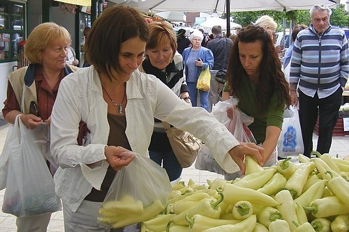 Veszprém is csatlakozott a kezdeményezéshez, így pénteken délelőtt Porga Gyula felesége a Vásárcsarnok előtt válogatott a hazai zöldségekből és gyümölcsökből. – Fontos, hogy a család jó minőségű ételeket fogyasszon – mondta Héthelyi Réka. – A piacon a vásárlás mellett közösségi életet is lehet élni. Sokszor a kereskedő hív, ha esetleg mehetünk hozzá gyümölcsöt szedni – árulta el hozzátéve, hetente legalább egyszer kijön a piacra. Most, a befőzések idején különösen igaz ez, hiszen hamarosan készül otthon az eper jam és a cseresznye befőtt. – Egy város életét nem csak a főutcájáról lehet meghatározni, hanem a piaci forgatagáról is – vélekedett Héthelyi Réka.