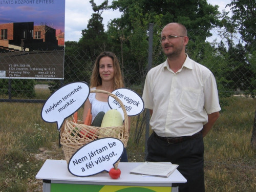 – Sajtótájékoztatónk helyszínén, a Dózsa György téren még el sem kezdődött az építése annak az üzletközpontnak, amelynek a választási ígéretek szerint idén tavaszra el kellett volna készülnie. A területen a legfrissebb hírek szerint az év végéig valósul meg a tervezett beruházás, melynek kapcsán szó sem esik helyi termelői piacról. A veszprémi LMP azt kéri a városvezetéstől, a dózsavárosiak érdekében gondolja végig, hogyan egészíthetők ki az eddigi tervek helyi termelői piac kialakításával. Hasonló piacok létrehozását javasoljuk a Jutasi, a Cholnoky, az Egry és az Endrődi lakótelepeken – fejtette ki Gerstmár Ferenc.