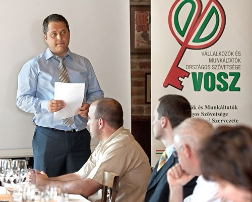 Gazsi Attila, a Vállalkozók és Munkáltatók Országos Szövetsége (VOSZ) Veszprém Megyei Szervezetének frissen megválasztott elnöke köszöntötte a megjelent vállalkozókat, illetve Veszprém polgármesterét, Porga Gyulát és dr. Horváth Zsolt országgyűlési képviselőt a munkareggelin, amelynek témája a vállalkozóbarát környezet megteremtése volt.