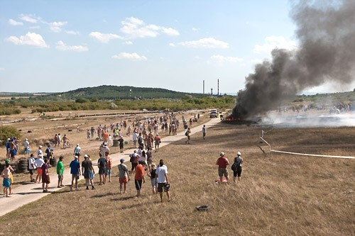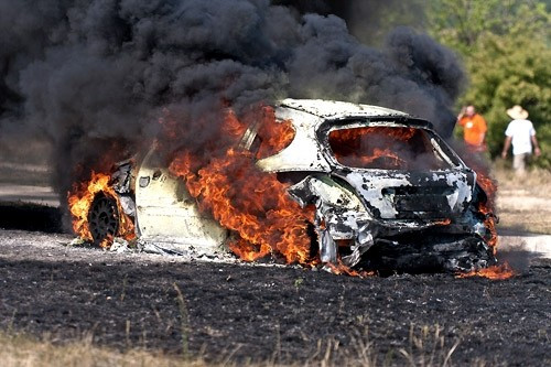 Az autó körül a tarló is kiégett mintegy fél labdarúgó pályányi területen. A lángok továbbterjedését csak a területet körülvevő beton övezet gátolta meg.