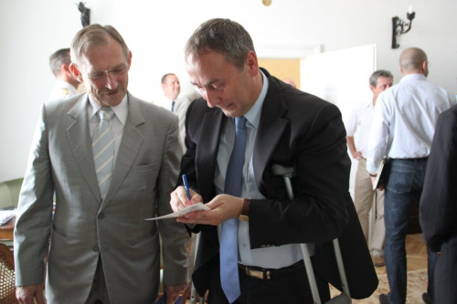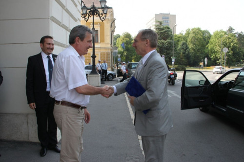 A kolontári és devecseri szemlét megelőzően csütörtökön délelőtt hivatalában fogadta Pintér Sándor belügyminisztert Dr. Kovács Zoltán kormánymegbízott és Lasztovicza Jenő a Veszprém Megyei Közgyűlés elnöke.