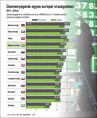 (Az Autóklub árai és az MNB július 27-i hivatalos deviza árfolyama alapján forintban)