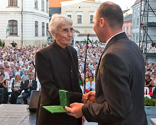 A beszédet követően a szépszámú közönség szűnni nem akaró vastapsa közepette vehette át Porga Gyula polgármestertől Mádl Dalma asszony a „Veszprém városa tiszteletbeli polgára” címet, melyet a város közgyűlése férjének, az egykori köztársasági elnöknek adományozott posztumusz.