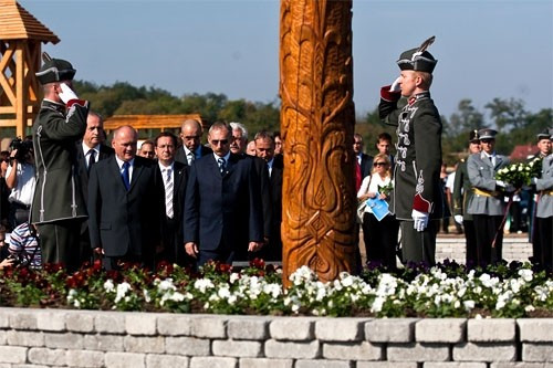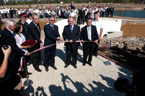 A vörösiszap-katasztrófa egyéves évfordulója alkalmából megrendezett ünnepség délben a devecseri emlékparkban folytatódott, ahol egyperces néma tiszteletadással adóztak a katasztrófa áldozatai és a közelmúltban elhunyt Makovecz Imre Kossuth-díjas építész emléke előtt.