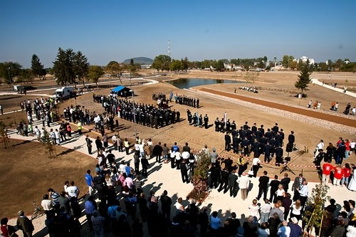 A jelenlévőket Pintér Sándor belügyminiszter köszöntötte. – Egy évvel ezelőtt ezekben a pillanatokban mozdult meg a MAL Zrt. X. kazettájának gátja, egymillió köbméter lúgos zagy tört Kolontár lakóira, a gyilkos áradat mindent magával ragadott, s pusztított Devecserben, Somlóvásárhelyen. A házakkal együtt elvitte az emlékeket, a gyermekkort, a múltat. Nem természeti katasztrófa történt, nem Isten ítélete, hanem emberi felelőtlenség – jelentette ki a belügyminiszter a devecseri emlékpark felavatásakor. – A gyilkos áradat még tombolt, amikor megkezdték a mentést azok, akik állva maradtak, családtagok, a perceken belül kiérkező tűzoltók, rendőrök, a mentőszolgálat tagjai. A gyors és szakszerű munkának köszönhetően többen maradtak életben, többeknek kevesebb lett az egészségromlása – mondta Pintér Sándor. – A katasztrófa sújtotta területért összefogott Magyarország, szolidaritásból példát mutattunk a világnak, újjáépítettük a környezetet – tette hozzá.