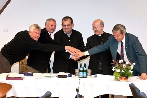 A sajtótájékoztató végén Ifj. Szatmári Árpád igazgató és Molnár F. Roland, az egyesület elnöke aláírták az együttműködési megállapodást, majd a jelenlévők közös kézfogással pecsételték meg a pillanatot.