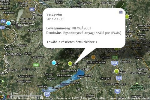 Az OKI honlapján található legfrissebb mérési adatok alapján készült térképen piros színnel jelölték, vagyis a levegő minősége veszélyesnek számít: Putnokon, Sajószentpéteren, Miskolcon, Nyíregyházán és Debrecenben. Ezeken a mérőállomásokon a szálló por (PM10) koncentrációja köbméterenként 100 mikrogramm felett van.