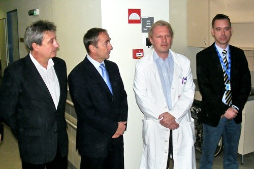 A helyszíni bejáráson részt vett dr. Kovács Zoltán kormánymegbízott, valamint Lasztovicza Jenő, a megyei közgyűlés elnöke is. Megtekintették a kivitelezés első ütemében elkészült audiológiát, a D épület földszintjén kialakított sürgősségi betegellátó osztályt, a gyermek ambulanciát, a teljesen digitalizált mobil röntgenkészüléket, valamint az A és D épületeket összekötő folyosót.