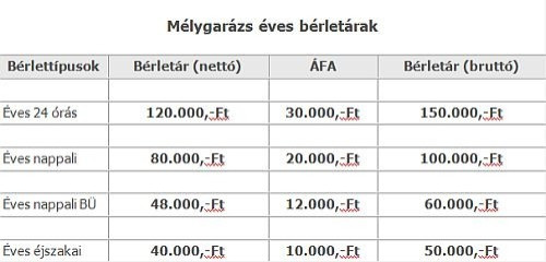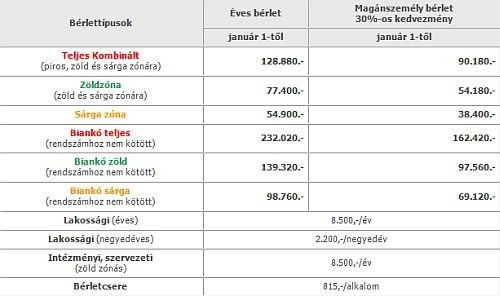 Az árak a következők, melyből december hónapban 5% kedvezmény jár éves bérlet vásárlása esetén: